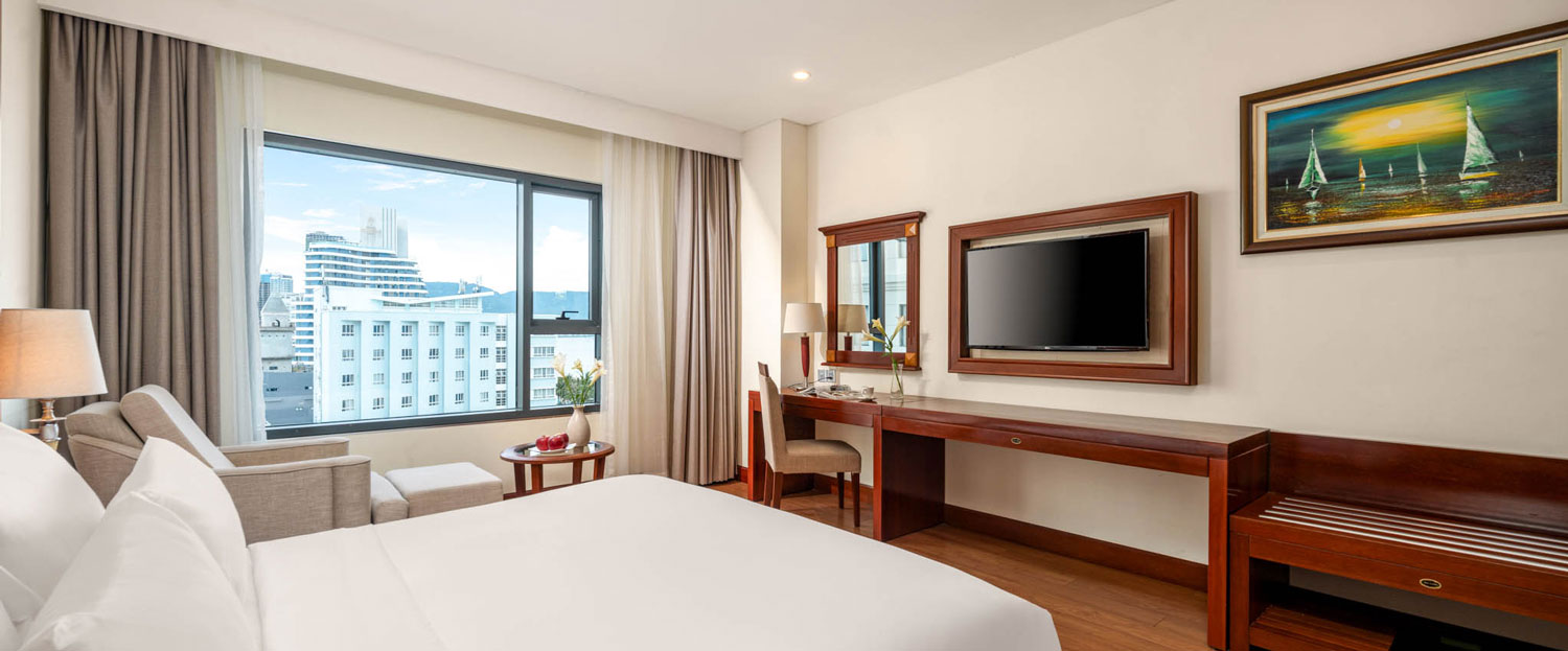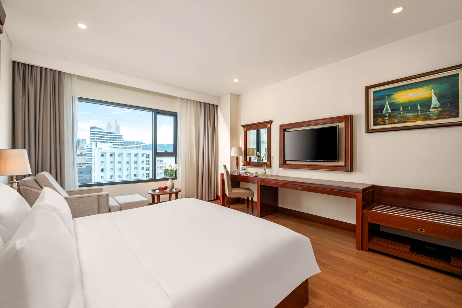 부드러운 안락의자에 몸을 기대어 따뜻한 차 한 잔을 즐기며, 아름다운 미케 비치(My Khe Beach)의 풍경을 감상해 보세요. 가족과 함께 진정으로 잊지 못할 휴가를 보내기에 완벽한 공간입니다.